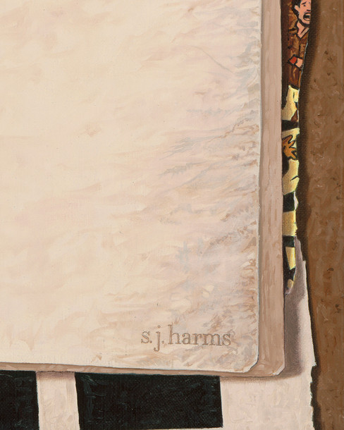 Composing the still life for Anatomy lesson, was a two week long process of trial and error to discover what objects felt "right" alongside the gun. Most of the objects I tried just clashed with the gun or tended to come off as trite. And worse, the gun dominated the composition in a way that made everything else seem like an afterthought. Finally, by laying the gun down and framing it with a backdrop of printed materials that boys I knew as a child might have read – science textbook and comic books – the piece came together and a story began to emerge.